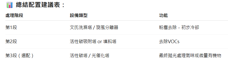 建議洗滌塔配置(針對 VOCs + 粉塵):