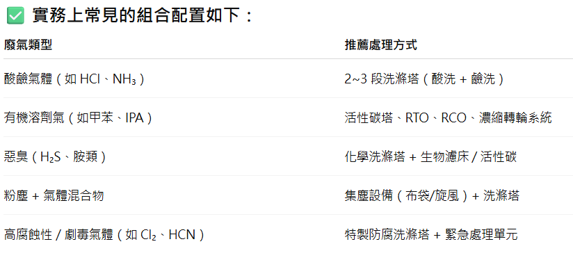 化學製程廢氣處理的常見流程與設備: